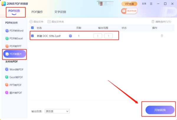 跳转到PDF转图片窗口后,可以点击页面下方的“输出目录”栏中,更改转换图片输出位置。如果不需要更改的话,直接点击“开始转换”键,并等待软件转换完成就好了。