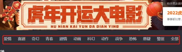 由此可见,芒果TV的电影区还是比较好找的,接下来我们看看它的电影是如何分类的。