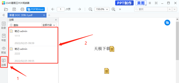 如果添加有多个笔记注释的话,可以在页面左侧选择“注释”选项,查看所有的注释内容,并进行编辑了。