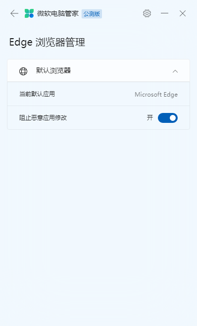 最后,微软电脑管家还可以对Edge浏览器进行管理,我们可以将它的阻止恶意应用修改功能的开关滑动打开,以此来保护我们在使用Edge浏览器访问网页的安全性。