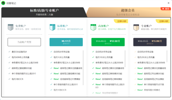 经小编亲自下载印象笔记并体验后得知,印象笔记的免费账户试用版本最多能同步2台设备,比如两步手机或两台电脑或一台手机加上一台电脑,如果出现登录提示升级账户的情况,那就是当前登录的设备过多,需要手动进行删减了。