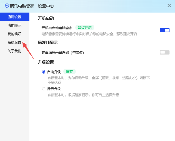 3、接着软件就会弹出设置中心的窗口了,点击左侧列表中的【高级设置】选项。