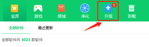 在360软件管家上方找到“升级”模块,进入后就会看到所有需要升级更新的软件应用。
