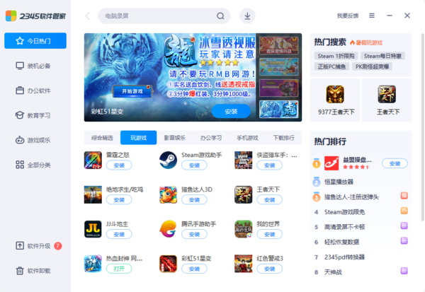 2345软件管家也是一款能够管理电脑中软件的工具,这款软件中收录了很多的应用程序,我们在这里可以直接下载,后续的升级或是卸载也可以在这里一键完成。