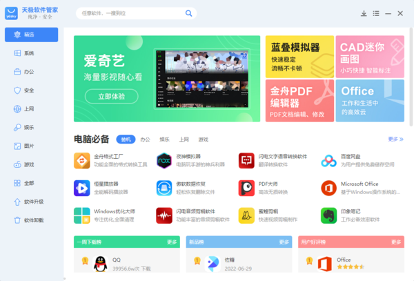 不知道大家平时在电脑上都会使用哪款软件来管理电脑上的软件程序呢?是360软件管家吗?还是腾讯软件管家呢?如果是的话,小编相信,大家的电脑上都有安装360安全卫士或腾讯电脑管家软件,毕竟这两个软件所对应的软件管家都需要先在电脑上安装它们才能够使用。而如果你电脑上使用的是其他的防护软件,那么此时你就可以通过天极软件管家来单独管理电脑上的软件了。而最近,有小伙伴向小编咨询了这样一个问题,就是pc版天极软件管家能一键卸载电脑上的软件吗?