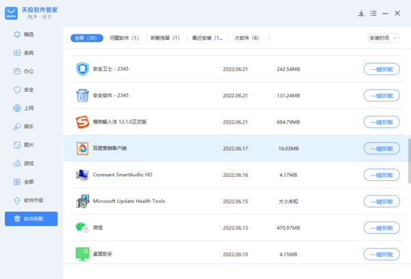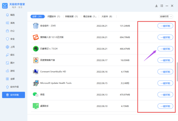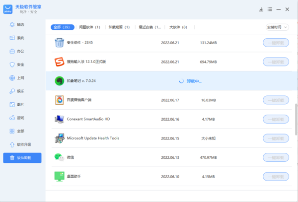 pc版天极软件管家能一键卸载电脑上的软件吗