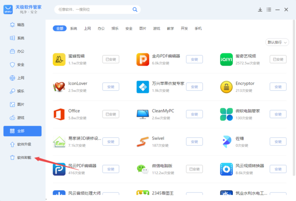 pc版天极软件管家怎样一键卸载电脑上的软件