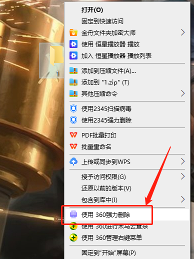 1、我们先找到自己要删除的文件,然后在上面对其点击鼠标得右键,然后在下面出现的菜单列表中找到“使用360强力删除”。