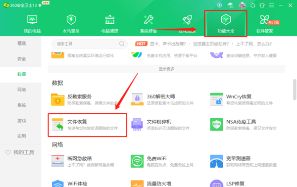 仍然是在刚刚提到的“功能大全”中,在下面找到“文件恢复”功能并点击。