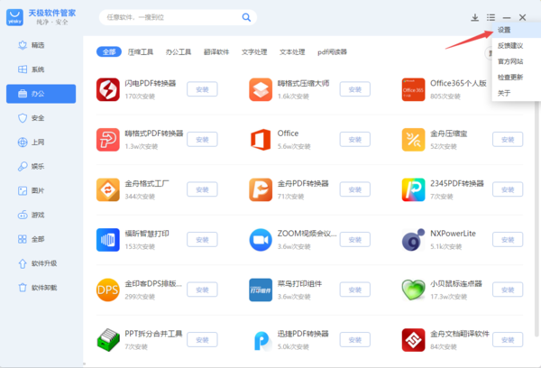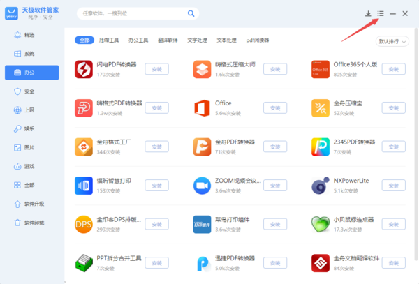 1、首先,我们还可以在PC端天极软件管家界面顶部右上角的【三】图标。