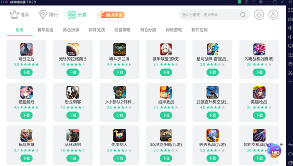 夜神模拟器作为模拟器软件中的网红,我们也是可以在这里面找到很多游戏,夜神模拟器中会按照游戏的类型进行分类,我们可以根据需要安装的游戏类型来进行查找,然后点击进入就可以下载安装了。