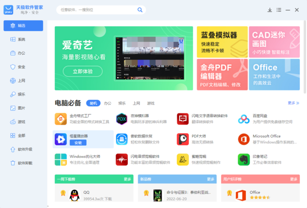 目前,市面上的PC版电脑上的软件管家工具有非常多,很多小伙伴们在选择软件管家工具的时候,也是看的琳琅满目,直到最后也不知道选择哪个软件好。而今天,小编就想为大家介绍3款PC电脑上的软件管家工具,都是非常值得大家使用的,同时有2款也是很多小伙伴经常会用到的软件管家工具,它们分别是天极软件管家,腾讯软件管家以及360软件管家,相信后面2款软件管家工具大家一定都非常熟悉和了解了。下面小编就详细的来为大家介绍一下推荐这3款软件管家工具的软件吧。