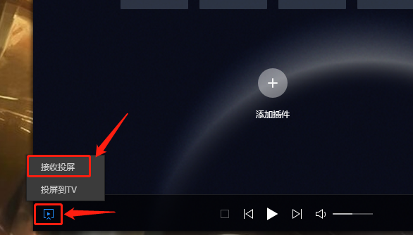 我们使用手机看视频时,如果需要将其投放到电脑里来看,是可以将手机上的内容投屏到恒星播放器中的。首先,我们打开恒星播放器之后可以看到在左下角有一个如下图所示的按钮,点击后上面会出现两个选项,这里我们选择“接收投屏”。