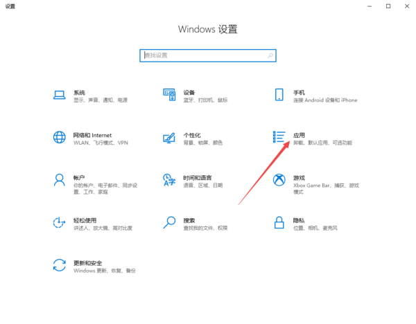 2、接着电脑就会弹出【Windows设置】窗口,此时找到【应用】功能,并点击进入。