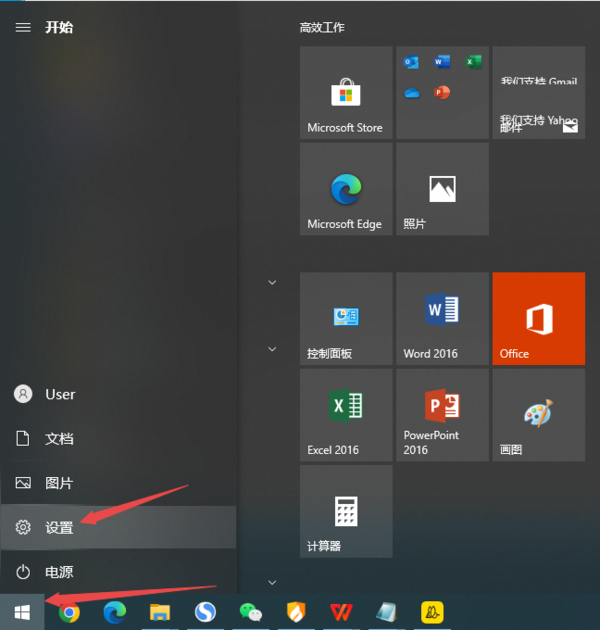 1、点击电脑桌面左下角的【开始】菜单按钮,然后点击【设置】功能。