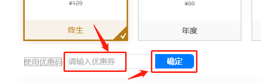 点击之后右侧会出现一个输入框,在这里输入优惠码,并点击后面的“确定”,这个时候优惠码就可以使用了。