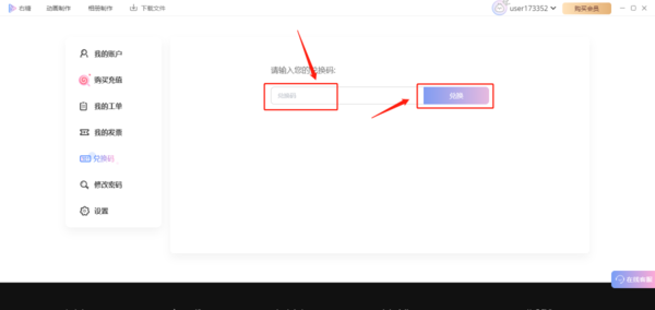 这时右侧界面会出现兑换码输入框,在这里输入兑换码,最后点击“兑换”就完成了。