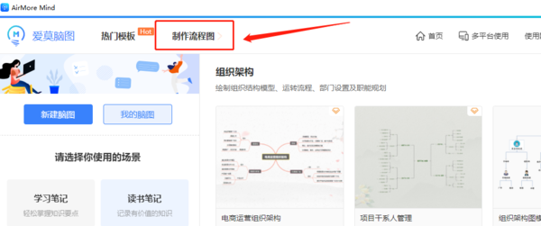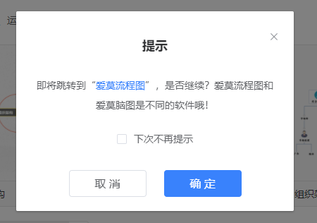 我们在软件上方可以看到一个“制作流程图”,点击后我们会看到一个提示,这里小编要告诉大家的是,点击制作流程图后并不会跳转到爱莫脑图中的某个功能中,而是下载另一款名为“爱莫流程图”的软件,用这款软件可以专门对流程图进行编辑修改。
