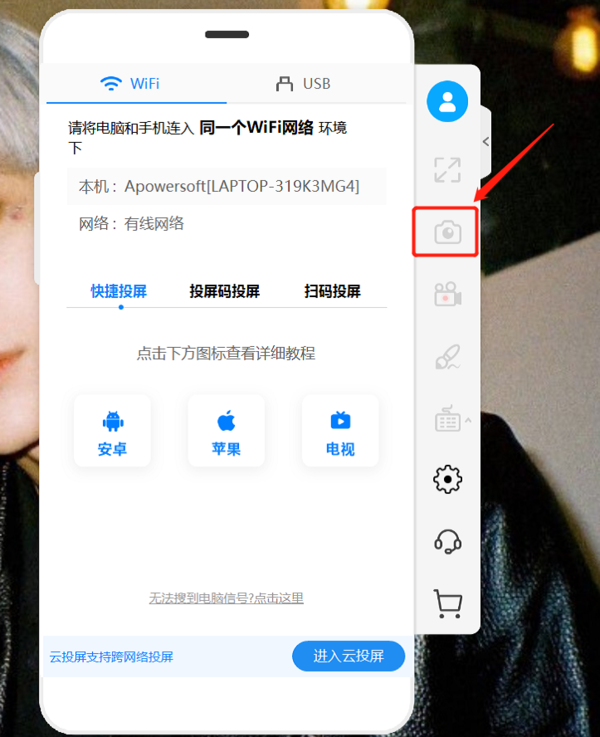 8步即可使用傲软投屏把手机画面投屏至台式电脑
