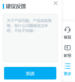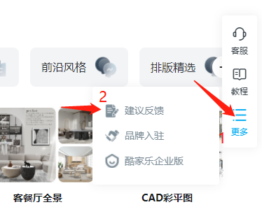 我们点击“更多”,会弹出扩展功能栏,在其中可以找到“建议反馈”,它就是美间的问题反馈入口,我们点击即可进行反馈。