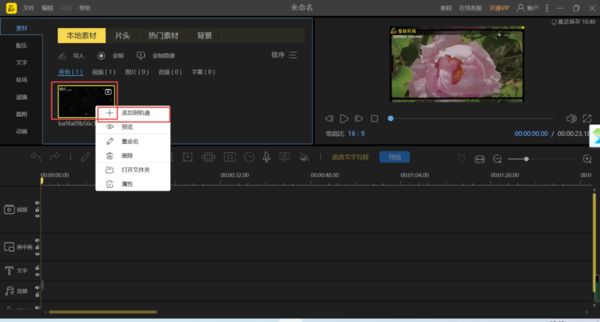 3、视频文件添加好以后,鼠标右键,然后选择【添加到轨道】选项。