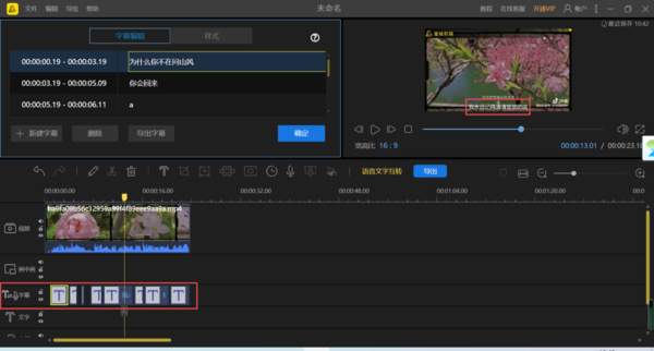 8、文字字幕提取成功后,在软件下方的【字幕】轨道中,我们就可以看到提取出来的文字字幕了。