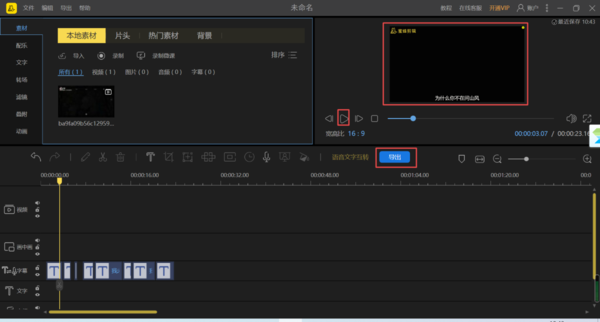 10、视频删除后就只剩文字字幕了,此时我们可以界面右上角的部分进行字幕内容的播放查看,确认无误后,点击下方的【导出】按钮。