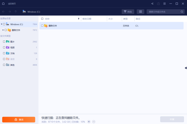 如果我们在丢失了文件的情况下不知道应该对哪个区域进行扫描的话,小编这边建议大家进行全盘的扫描,虽然时间会拉长,但是全盘扫描后对于文件的缺失和查找都是有很大帮助的,所以建议大家在不确定扫描位置时,就对整个磁盘进行扫描查找。