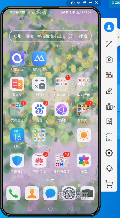 8、最后,我们就可以成功的将手机上的画面通过傲软投屏软件投屏到PC台式电脑上了,同时也可以在PC电脑端进行对手机的操作控制了。