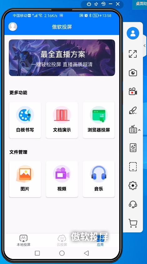 傲软投屏能把手机画面投屏到PC台式电脑上吗
