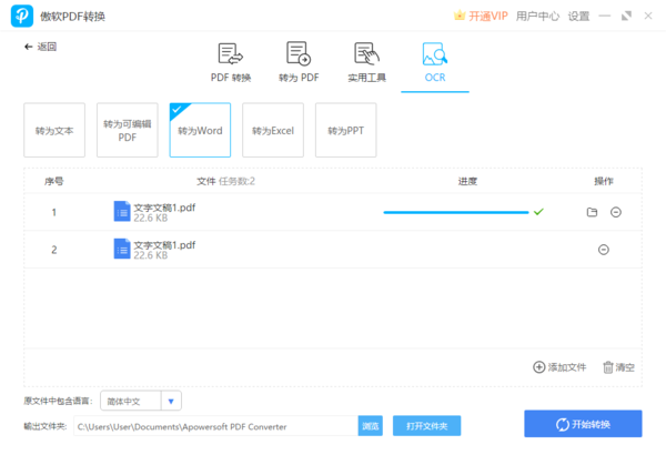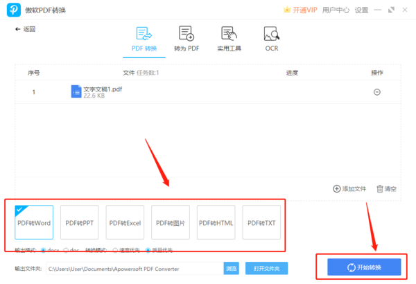 想直接将PDF文件中的文字提取出来就可以使用到这个功能,点击“扫描PDF转文本”,接着选择需要进行扫描的PDF文件,依然是点击右下角的“开始转换”,等待进度走满,就可以得到一份Word格式的文档了,这时候文字就提取成功了。