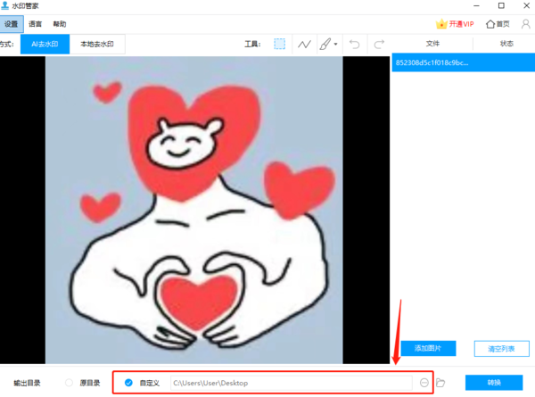 也可以是先对图片或视频进行水印的增减,然后在转换导出之前,仍然是在软件的底部刚才提到的位置上,找到“选择文件夹”就可以将保存路径更换了,接着正常的导出图片或视频就可以了。