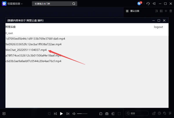 8、登录成功后,在阿里云盘的插件界面,我们就可以看到自己阿里云盘中的文件了,双击即可进行视频文件的播放了。