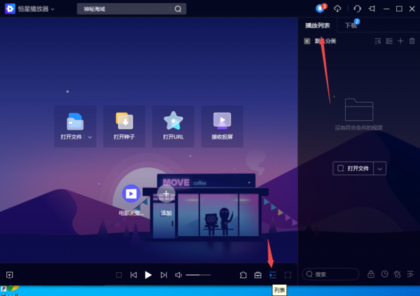1、想要关掉PC版恒星播放器的播放列表的话,我们还可以找到软件界面底部右下角位置的三个横线加一个箭头的【列表】按钮,点击它,就可以关掉恒星播放器的播放列表了。