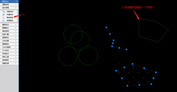 我们在CAD迷你画图的园林设计区中,先依次选择【绿化种植】→【画地被线】,然后画出地被线的轮廓。