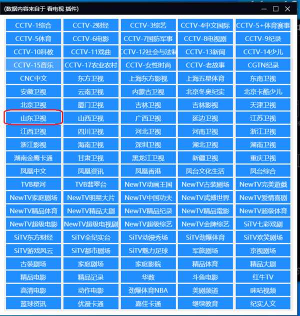 6、接着软件会弹出这个插件的数据内容,然后选择一个自己想要看的电视直播的电视台。
