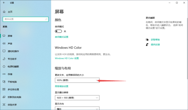 3.接着在系统设置选项中,找到右侧界面中的【缩放与布局】选项下载的【更改文本、应用等项目的字体大小】选项,然后将这个默认的【100%推荐】选项,调整为【125%】。