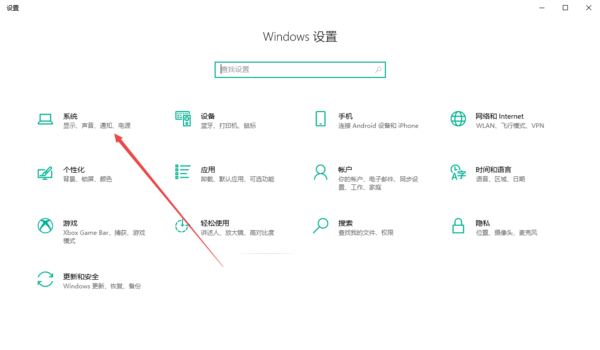 2.然后在弹出的windows设置选择中,找到【系统】选项,并点击它。