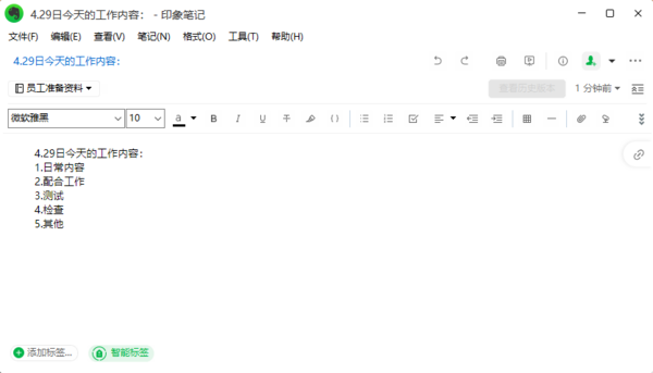 1、打开电脑版印象笔记,然后找到想要进行字体大小调整设置的笔记内容,然后我们可以看到笔记内容上方会有字体和大小的两个显示,这里我们可以看到笔记内容的字体大小是10。