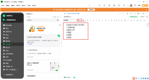 4、最后回到印象笔记的笔记内容当中后,我们就可以看到笔记内容的字体大小就已经设置调整好了。