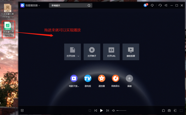 另外,如果待加入的音频文件,位于很显眼的位置(例如桌面),我们还可以直接将文件拖入到恒星播放器,可实现快捷播放音乐。