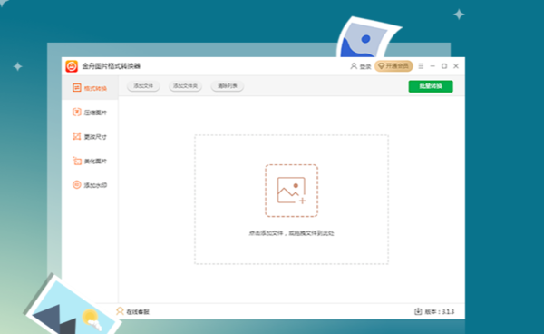 和金舟格式工厂稍有不同的是,金舟图片格式转换器是专用于图片格式的转换软件,支持图片格式的批量转换。除此之外,还支持对图片尺寸修改、美化图片以及批量添加水印,图片格式相互转换都可以轻松的实现。