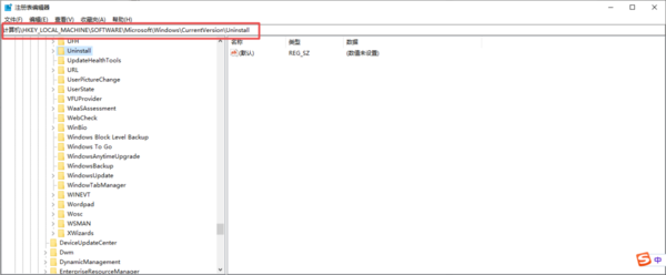 2、接着系统就会打开电脑的注册表,此时我们在左侧的选项中,进入到【HKEY_LOCAL_MACHINE\SOFTWARE\Microsoft\Windows\CurrentVersion\Uninstall】这个路径当中。