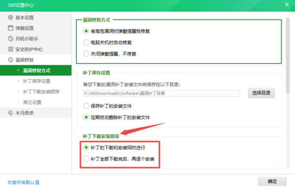 360安全卫士的补丁下载安装顺序在哪里进行调整