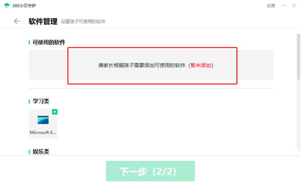 接下来是软件管理界面,在这里设定好可以使用的软件,然后继续点击“下一步”。