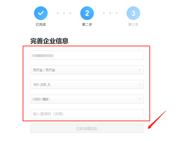 验证完成后来到第二步,输入组织团队的名称,然后选择所属行业以及组织所属地区,选择完成后,点击下面的“立即创建团队”,这时候就可以进入到团队管理后台中了,在这里,可以对考勤、人员管理等进行相关的设置调整了。
