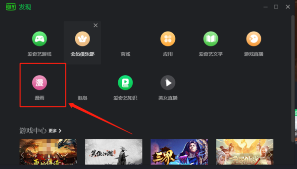 我们知道了如何在爱奇艺客户端玩游戏,那就会有小伙伴问了,游戏可以玩,那漫画可不可以看呢?别急,我们再往下看看。