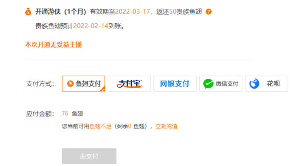 如果我们是在开通贵族时发现迟迟未到账,首先查看下账户中的鱼翅的余额以确认我们是否开通了贵族,或是贵族自动续费是否成功,鱼翅余额充足时,我们可以再次使用鱼翅来开通或是续费贵族就可以了。如果账户中的鱼翅没有余额但消费记录中可以查找到扣费记录,就需要我们截图并找人工客服进行咨询处理了。