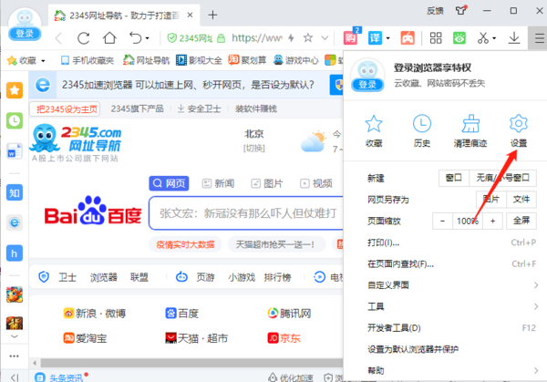 对于2345加速浏览器的游戏区调整,还是在设置中,我们以相同方法进入设置即可。