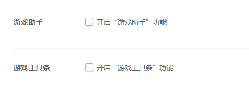 在设置中,我们还是在“基本设置”这一大模块中,向下拉,找到最下方,我们就可以看到游戏相关的设置;首先是“游戏助手”,我们可以通过取消勾选来关闭,同样地,我们可以通过相同方式关闭“游戏工具条”。